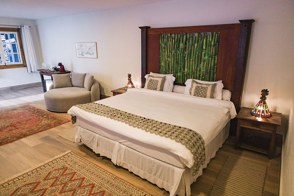 Suítes mais recentes do resort, que oferecem conforto e exclusividade. Com piscina/hidromassagem e sauna privativas. Contam com cama king size, jardim interno, adega, máquina de café e chaleira elétrica. Acomoda até mais 3 camas extras de solteiro.